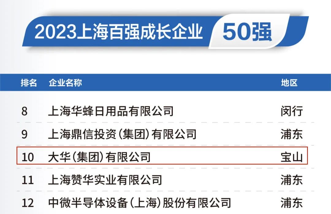 “上海百强企业新闻宣布会”每年举行,,,,,,并同时宣布百强企业榜单和生长报告,,,,,,不但是企业综合实力的见证,,,,,,更被视为上海经济生长的晴雨表。。。。。。。。在2022年在企业谋划情形爆发重大转变、多重重大因素叠加的难题情形下,,,,,,大华集团坚持恒久有质量的稳健谋划生长的理念,,,,,,在榜单排名一连稳步上升。。。。。。。。